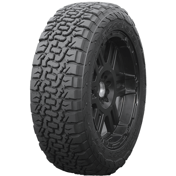 Features include: Designed for use on light trucks and SUVs; Tread specifically designed to have an attractive wide cross-section, gives a longer service life, and provides superior traction in all-terrain; Built with an aggressive tread pattern that increases traction and provides stylish looks; Dynamic wide grooves easily maximize mudflow and bite on road surfaces under various conditions; Wide grooves force mud and water out of the tread for consistent traction; Multiple edge block gives an aggressive impression, low road, and comfortable ride; Engineered with edge blocks that lower road noises and vibrations for a quiet, comfortable ride on paved roads; Edge blocks also decrease slips on rocks and force stones out of the tread; Self-cleaning design forces rocks, stones, and other debris out of the tread for consistent traction and to protect the casing from damage – LT225x65R17 107/103Q Accelera Omikron C/T Light Truck All Terrain Tires, part number 1200055604 | Accelera Omikron C/T All Terrain Tires in Blackwall, LT225/65R17 107/103Q | SimpleTire