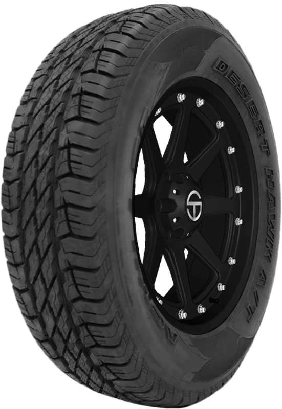 The Achilles Desert Hawk AT tire is designed for four-wheel drives and SUVs. It delivers excellent ride handling both on and off the road. The multiple independent blocks provide grip in a variety of surfaces in both wet and dry conditions. On mud, wet surfaces, and light snow, the multiple block edges combine with sipes to increase traction while voids between the blocks drain water, slush, and mud to enhance skid resistance. – Features include: Designed for use on light trucks and SUVs; Built with staggered tread blocks that enhance traction; Two wide grooves force water out of the tread to reduce the risk of hydroplaning on wet roads; Tough rubber compound guards the tire against cuts, chips, and abrasions for a longer tread life; Wide, deep grooves further enhance grip on- and off-road – 205x80R16 110S Achilles Desert Hawk AT Light Truck All Terrain Tires, part number MAI208016 | Achilles Desert Hawk AT All Terrain Tires in Blackwall, 205/80R16 110S | SimpleTire