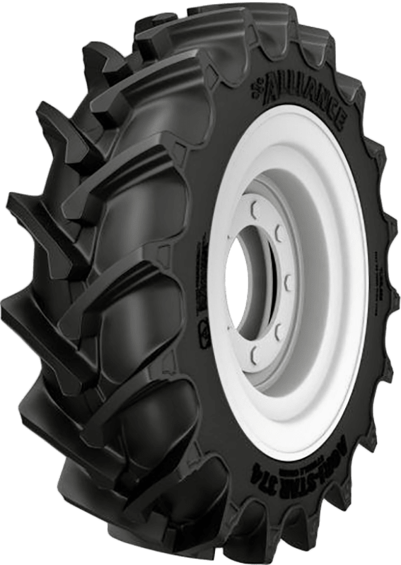 Features include: Field-tested in rice country; Self-cleaning tread design ejects mud, dirt, and other debris for consistent traction and performance; Flat tread profile minimizes ground pressure and improves handling on pavement; Innovative “stepped” reinforcements on tread bars reduce lug movement to enhance traction; Super-deep tread with tread bars that are more than 3″ deep for better traction and performance – 480-34 155A8 Alliance Agri-Star 374 Farm Tires, part number 37400030 | Alliance Agri-Star 374 Farm Tires, 480-34 155A8 | SimpleTire