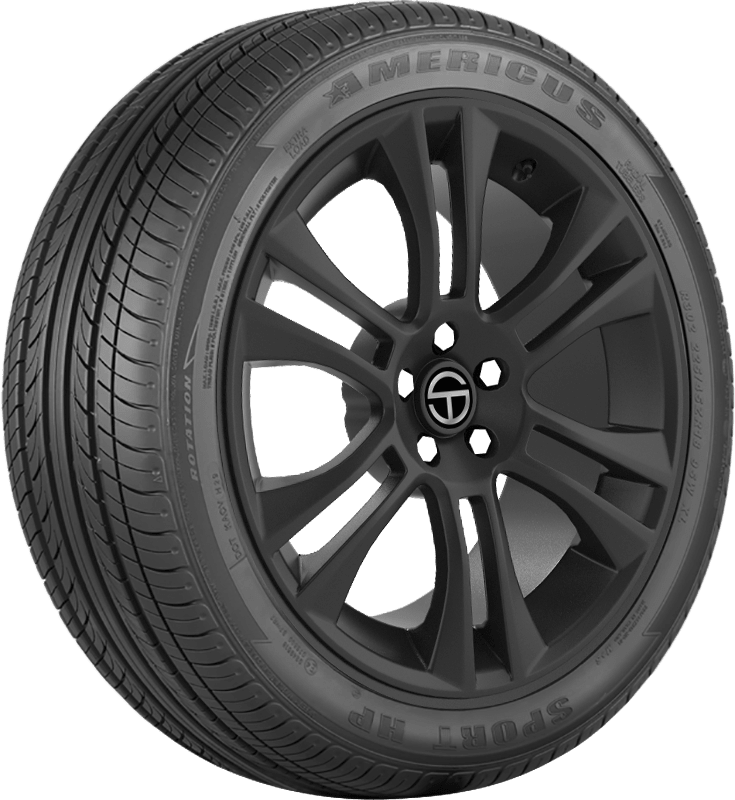 Features include: An all-season, high-performance tire for passenger cars; Designed for use on sedans, minivans, and CUVs; Optimized tread pattern and all-season rubber compound ensure solid year-round performance; Backed by a 45,000 mile limited manufacturer tread life; Angled lateral and wide circumferential grooves boost wet traction; Solid center rib boosts straight-line stability; Solid center rib improves grip and enhances steering responsiveness and driving stability; Circumferential grooves resist hydroplaning by quickly removing water from the tread; Reinforced internal structure reduces risk of deformations; Sticky tread formulation boosts traction; Backed by a 60,000 mile limited manufacturer warranty; Rubber formulation is designed to provide solid traction in wet and dry conditions; Continuous center rib channels water behind the tire’s contact patch to reduce the risk of hydroplaning; Aggressive, directional tread pattern enhances cornering abilities – 205/55R15 88V Americus Sport HP Passenger All Season Tires, part number AMD0172 | Americus Sport HP All Season Tires in Blackwall, 205/55R15 88V | SimpleTire