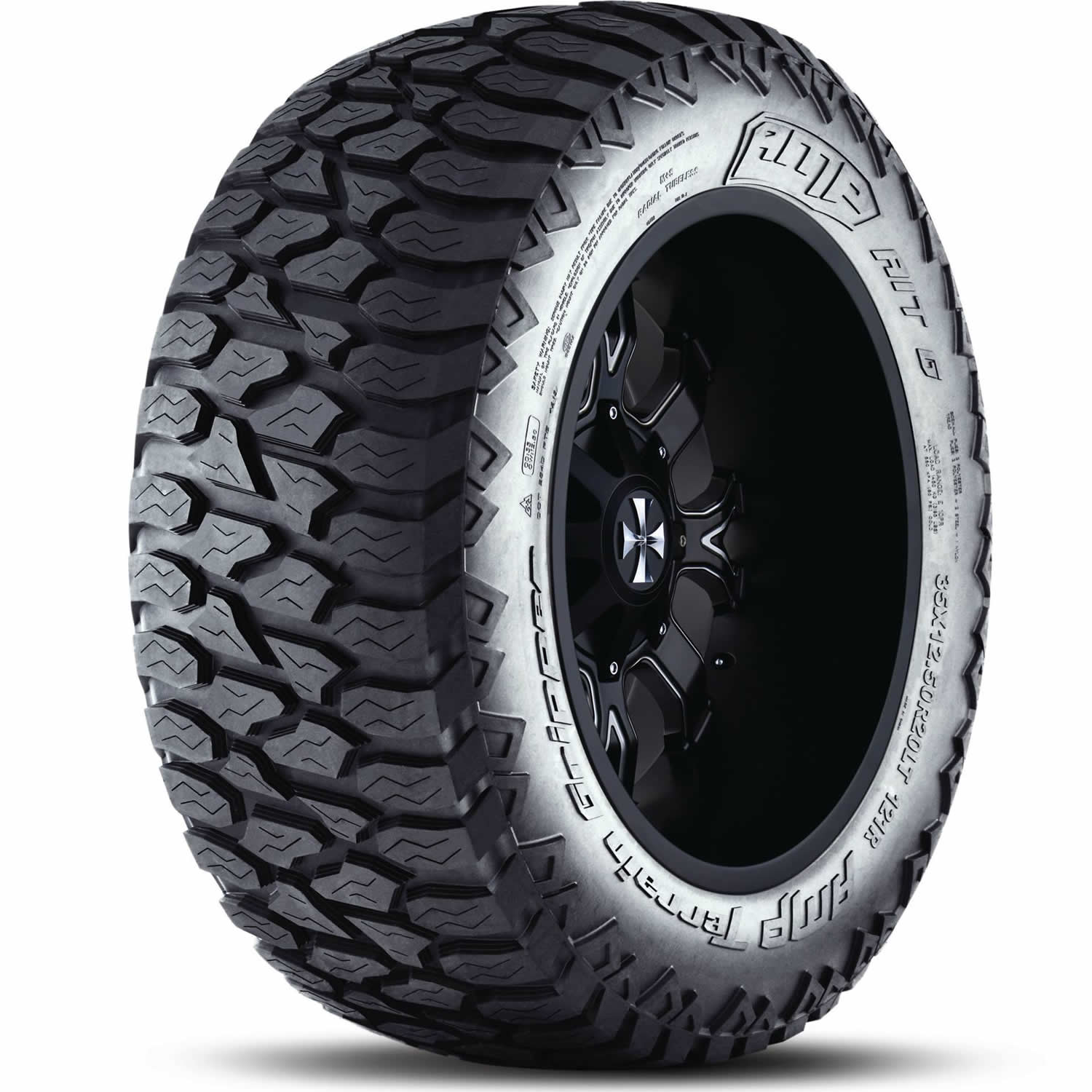 Features include: Designed for use on Jeeps, light trucks, and SUVs; Aggressive tread pattern allows for solid traction on and off road; Three Peak Mountain Snowflake symbol means this tire is certified to perform in severe snow conditions; Widely spaced grooves force water, mud, dirt, rocks, snow, and slush out of the tire for consistent traction and to protect the casing from damage; Built with a tough rubber compound that enhances strength and durability for a longer tread life; Optimized design reduces road noises to improve ride comfort on road while helping to boost stability and reduce uneven wear – LT37x12.50R20 126R Amp Terrain Gripper A/T G Light Truck All Terrain Tires, part number 37125020AMPCA | Amp Terrain Gripper A/T G All Terrain Tires in Blackwall, LT37/12.50R20 126R | SimpleTire