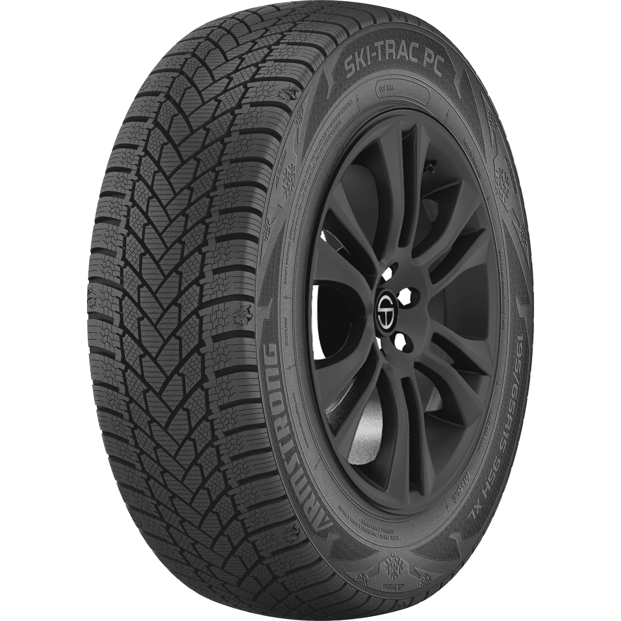 Features include: Designed for use on passenger vehicles in winter weather conditions; should not be used when temperatures are consistently above 45 degrees Fahrenheit; Winter tread; should not be used when temperatures are consistently above 45 degrees Fahrenheit; Three Peak Mountain Snowflake certified for use in severe winter weather conditions; Black sidewall; Uni-directional tread pattern enhances traction and handling performance; Three Peak Mountain Snowflake rated for severe winter service; Optimized 3D sipes bite into the road to increase handling capabilities while also shortening stopping distances; Specialized winter tread formulation for consistent traction and performance; Four wide grooves drain water out of the tread to reduce the risk of hydroplaning on wet roads – 175/65R14 82T Armstrong SKI-Trac PC Passenger Winter Tires, part number 1200050985 | Armstrong SKI-Trac PC Winter Tires in Blackwall, 175/65R14 82T | SimpleTire