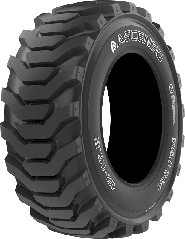 Features include: Designed for use on skid steers; Radial construction; Angled lug tread design allows for consistent traction and performance; All-steel reinforcement for strength and durability; Damage-resistant tread compound guards the tire against cuts, chips, and abrasions – 27×8.5-15 Ascenso SSB331 Industrial Tires, part number 3002040016 | Ascenso SSB331 Industrial Tires, 27/8.5-15 | SimpleTire
