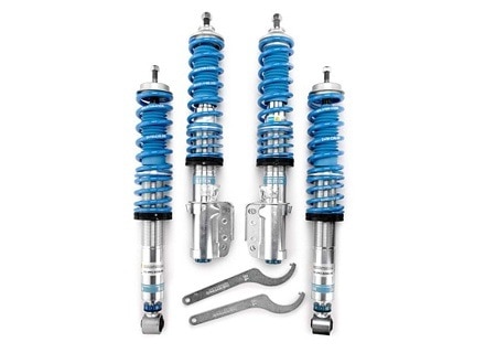 Bilstein B16 (PSS10) – Utilizing Bilstein”s monotube shock absorber design for heat dissipation and ride control, the PSS10 (B16) Coil-Over System, evolved from the PSS9 system, adds a matched performance spring and threaded ride height adjuster to provi
