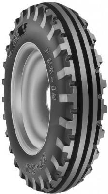 The BKT TF-8181 F-2 Farm Tractor tire is suitable for use in a variety of farm and agricultural situations. From field to every day transport, the deep tread design provides optimal traction in on and off road conditions. Sturdy shoulder bar construction provide excellent sidewall protection from punctures and contact damage. This feature assures a longer tire life and decreases the wear experienced from steady use. In conjunction with a wider tread area, TF-8181 tires last longer that similar tires. Lastly sturdy construction resists damage caused by common cut, chipping and puncture hazards. – Features include: Designed for use on the front of two-wheel-drive tractors in field and tillage use; Bias ply construction; Minimal soil disturbance thanks to a raised center rib and optimized design that increase flotation; Tread pattern enhances traction and control; Offers drivers improved roadability thanks to a smart tread patter, optimized design, and durable rubber compound – 5.00-15 76A8 BKT TF-8181 F-2 Front Tractor Farm Tires, part number 94020546 | BKT TF-8181 F-2 Front Tractor Farm Tires in Tube-Type, Bias Ply Construction, 5.00-15 76A8 | SimpleTire