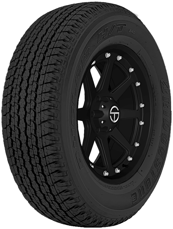 Exceptional technology innovations make the Dueler D840 tires from Bridgestone a welcome option for drivers of trucks, SUVs and Crossovers who value safety and performance. D840 tires perform in wet or dry weather with water evacuating tread designs that force water away from tire surfaces for improved handling and fewer hydroplanes. The balanced profile improves handling on most roads while the extra durable construction leads to longer tire life and dependability. – Features include: Designed for use on pickup trucks, CUVs, and SUVs; Wide grooves remove water from the tread to improve hydroplaning resistance; All weather traction control; Reinforced construction increases strength and durability for a higher load carrying capacity; Designed for trucks, crossovers and SUVs; Optimized profile fends off uneven wear for a longer tread life; Incredible handling; Angled tread blocks bite into the road to boost year-round traction – P265x70R16 111S Bridgestone Dueler H/T 840 Light Truck All Season Tires, part number 000910 | Bridgestone Dueler H/T 840 All Season Tires in Blackwall, P265/70R16 111S | SimpleTire
