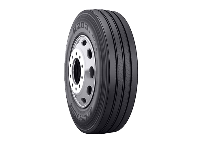 The fuel-efficient Bridgestone R283s Ecopia tire is designed for the steer wheel position. Its proprietary compounding and design enable it to deliver long mileage and tread life in regional freight applications. Its tough tread also offers resistance against tear and occasional curbing. The Ecopia 283S features a four-rib tread design that enhances tread stiffness and the result is lower rolling resistance. The optimized tread width and depth maximizes tread volume for longer original life. – Features include: Tread depth 18/32″; Low rolling resistance; Durable tread compound; All-season traction; Rim/Wheel is not included with purchase – 295/75R22.5 149/146L Bridgestone R283S Ecopia Commercial Tires, part number 008829 | Bridgestone R283S Ecopia Trailer Tires in Blackwall for Commercial Vehicle, 295/75R22.5 149/146L | SimpleTire