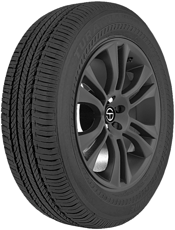 An all-season touring tire, the Turanza EL400 is designed for use on coupes and sedans thanks to its year-round performance abilities. – Features include: Designed for use on sedans, minivans, and CUVs in winter weather conditions; should not be used when temperatures are consistently above 45 degrees Fahrenheit; Rubber compound reduces uneven wear for a longer tread life; Backed by a 40,000 mile limited manufacturer tread life; Speed rating H (130 mph); Long Link Carbon tread formulation resists cuts, cracks, and chips to enhance strength and durability; Tread depth 10/32″; Circumferential grooves remove water from the tire’s contact patch for enhanced wet traction; All-season traction; UNI-T construction allows for better stability at higher speeds – P215/55R17 93V Bridgestone Turanza EL400 Passenger All Season Tires, part number 043529 | Bridgestone Turanza EL400 All Season Tires in Blackwall, P215/55R17 93V | SimpleTire