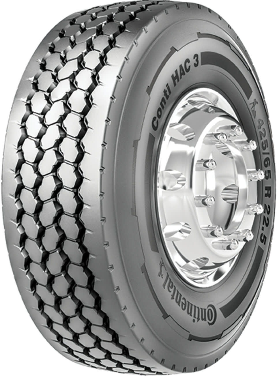 Features include: Enhanced cap and base compounds allow for use in severe service applications; Aggressive tread pattern provides traction on- and off-road while also helping to extend the tire’s service life; Reinforced sidewall gauge protects against cuts, abrasions, curb scuffs; 4-belt tread package resists punctures and impacts for a longer service life; Groove geometry is designed for easy retreading; Heavy-duty casing protects the casing from damage for a longer service life – 385/65R22.5 160K Continental Conti HAC 3 Commercial Tires, part number 05652000000 | Continental Conti HAC 3 Trailer Tires in Blackwall for Commercial Vehicle, 385/65R22.5 160K | SimpleTire