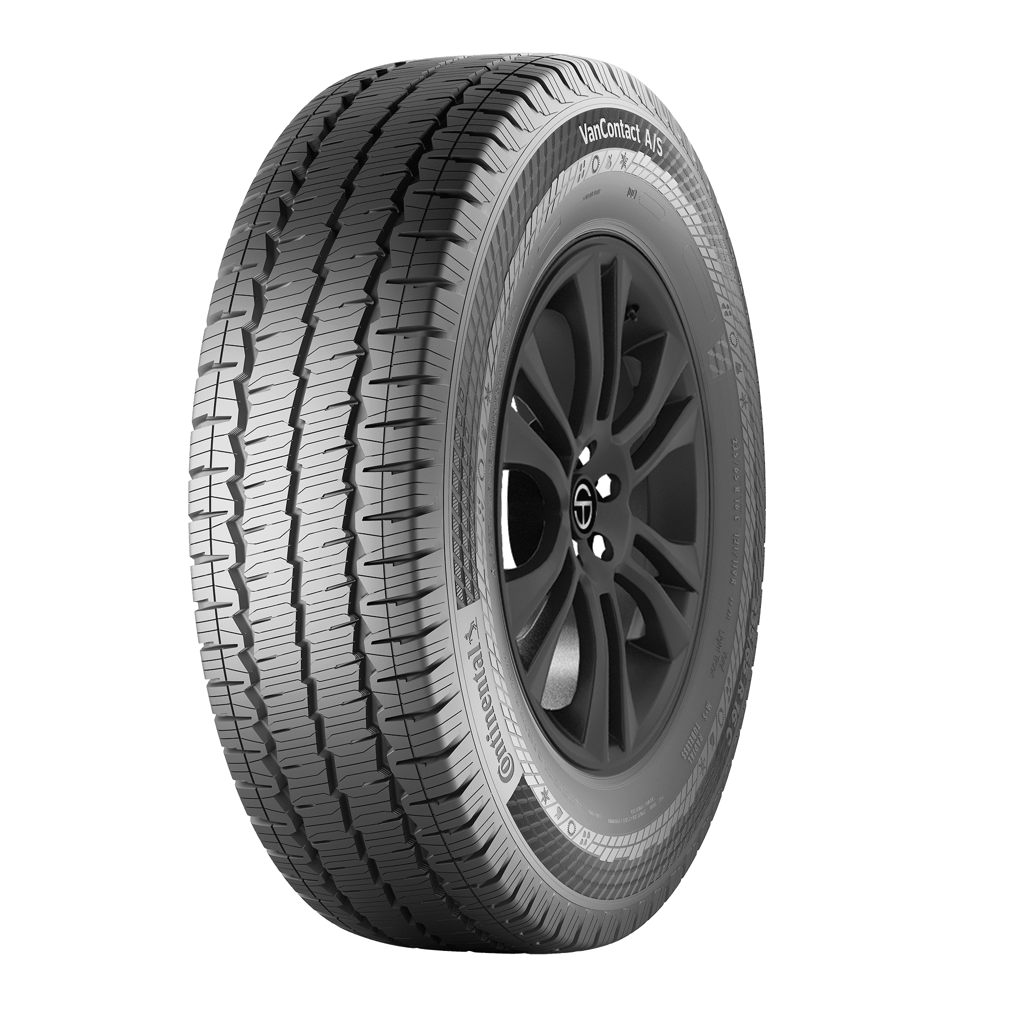 Features include: 72-months of limited manufacturer tread life coverage; All-season tread; Engineered for long-lasting tread life and stellar snow performance; Black sidewall; Built for robust durability to give drivers confident hauling capabilities; 60,000 mile limited manufacturer tread life warranty; Superior fuel efficiency thanks to an optimized design that lowers rolling resistance; Backed by Continental’s Total Confidence Plan includes a limited warranty, flat tire roadside assistance, a customer satisfaction trial, and a treadwear mileage warranty.; Excellent traction in dry, wet, and winter weather conditions; Constructed with reinforced materials and a robust design to withstand the heavy loads and demands of commercial use; 3-Peak Mountain Snowflake: Meets the severe snow service requirements of the U.S. Tire Manufacturer’s Association (USTMA) and the Tire and Rubber Association of Canada (TRAC); Treadwear Indicators: The numbers 5, 4, & 3 in the tread disappear when the tire is no longer tuned for optimum performa – 235/65R16C 121/119R Continental Vancontact A/S Ultra Passenger All Weather Tires, part number 04517760000 | Continental Vancontact A/S Ultra Tires in Blackwall, 235/65R16C 121/119R | SimpleTire