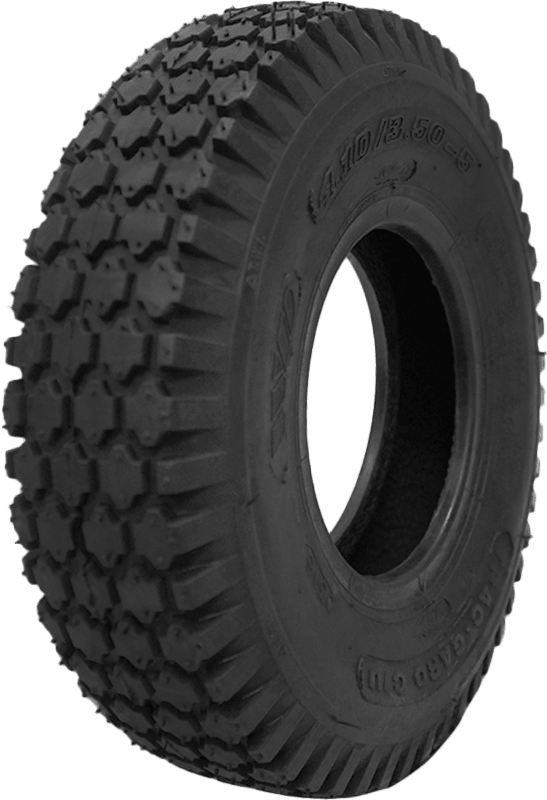 Features include: Diamond-shape stud tread pattern; High void ratio; Tread self-cleans, ejecting dirt and grass for traction – 4.10/3.505NHS Cordovan Stud Lawn & Garden Tires, part number SUW10-COR | Cordovan Stud Lawn & Garden Tires in Tubeless, 4.10/3.505NHS | SimpleTire