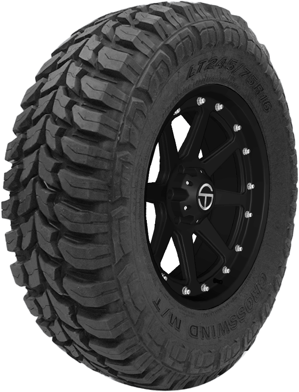 An all-season tire, the M/T is designed for use on Jeeps, SUVs, and Mid- and Full-sized pickup trucks, and offers drivers strong on- and off-road traction. – Features include: Designed for use on light trucks and SUVs; Tread is designed for use on mud and other off-road terrains; Optimized grooves for better safety in wet conditions; Black sidewall; Strong shoulder blocks for superior puncture resistance; Strong shoulders blocks enhance puncture resistance; Sipes provide extra grip on wet surfaces; Aggressive tread pattern enhances off-road traction – LT275x70R18 125/122Q Crosswind M/T Light Truck Mud Terrain Tires, part number MTR2822LL | Crosswind M/T Mud Terrain Tires in Blackwall, LT275/70R18 125/122Q | SimpleTire