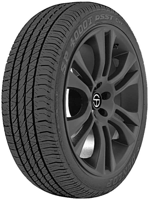 The SP Sport 4000 DSST CTT is a high-performance, all-season tire that offers drivers enhanced grip, control, and treadwear along with a quiet ride. – Features include: All-season tread; Black sidewall; Features Dunlop Self-Supporting Technology (DSST) in the sidewall to help drivers stay on the road for up to 50 miles at 50 mph on a flat; Dunlop Self-Supporting Technology (DSST) uses a patented sidewall construction to allow continued driving on a flat tire for up to 50 miles at 50 mph in normal conditions; Combined Tire Technology (CTT) provides less tire weight and rounder cavity shape to help offer a softer ride; Twin-shift noise reduction helps provide quiet performance; Rigid tread blocks for dry handling performance help provide excellent steering and control during cornering; An optimized groove area helps provide grip on multiple surfaces for all-weather traction, while circumferential rain grooves enhance traction in wet weather – P225/60R17 98T Dunlop SP Sport 4000 DSST CTT Passenger All Season Tires, part number 265004379 | Dunlop SP Sport 4000 DSST CTT All Season Tires in Blackwall, P225/60R17 98T | SimpleTire