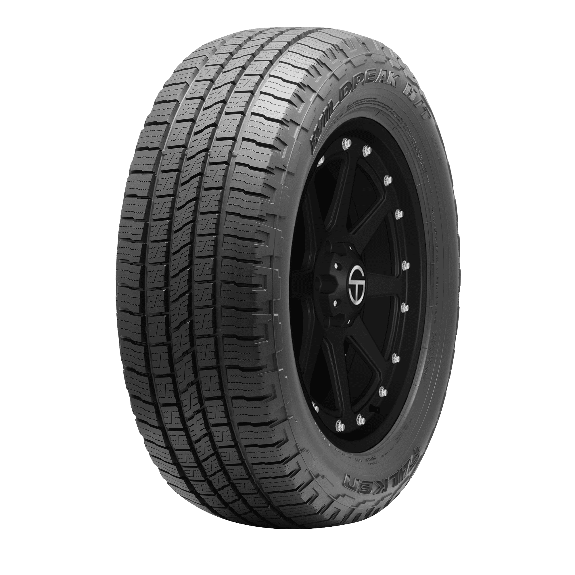 The Wildpeak H/T02 is an all-season tire meant for use on light trucks that offers drivers all-season durability, heavy duty towing capabilities, and an up to 75,000-mile limited tread life warranty. – Features include: Highway terrain tread; Black sidewall; 75,000 mile limited manufacturer tread life warranty for P-metric sizes, and 50,000 mile limited manufacturer tread life warranty for LT-metric sizes (Cargo sizes are not backed by a warranty); Rigid tread blocks and rugged upper sidewall offer enhanced durability and stability; Advanced 4D Nano design and 3D Canyon Sipe technology ensure superior grip and control in various weather conditions; HD Badge for Heavy Duty Construction certifies its ability to handle the heavier loads and more intensive tasks typical to modern truck usage; Silica-enriched compound provides exceptional wet performance and superior wear life; Optimized tread pattern and three variable pitch positions create a quiet ride; Aggressive upper sidewall protect the shoulder of the tire from hazards that are common at construction sites or on the highway; Rigid tread blocks enhance vehicle stability and handling when towing or hauling; Four wide circumferential grooves enhance hydroplaning resistance b – 235x65R16C 121/119R Falken Wildpeak H/T02 Light Truck All Season Tires, part number 28827033 | Falken Wildpeak H/T02 All Season Tires in Blackwall, 235/65R16C 121/119R | SimpleTire
