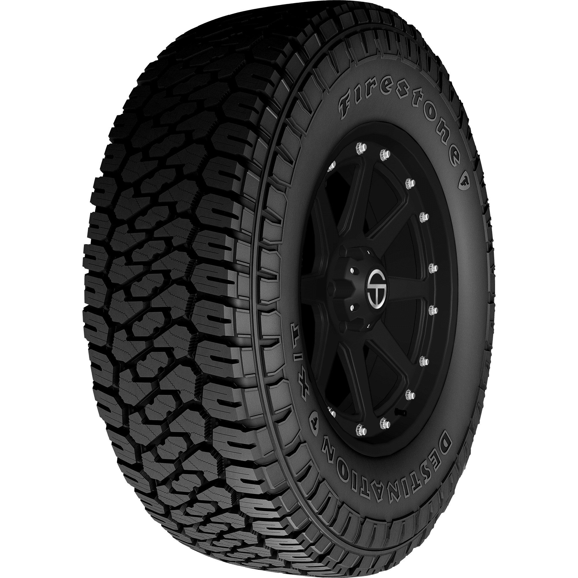 Designed for use on light trucks and SUVs, the Destination X/T is an all-season, all-terrain tire that offers drivers dependable off-road traction along with a 50,000 mile limited tread life warranty. – Features include: Designed for use on light trucks and SUVs; Rugged-terrain tread; Backed by a 50,000 mile limited manufacturer tread life; Outlined White Letter (OWL) or Black sidewall, depending on the tire’s size; Aggressive, all-terrain tread pattern for strong traction on- and off-road; 50,000 mile limited manufacturer tread life warranty; Wraparound lugs at shoulder boost lateral grip; Three Peak Mountain Snowflake certified for use in moderate to severe winter weather conditions; Backed by Firestone’s 90 day Buy and Try Guarantee on tires sold in sets of 4 or more (certain restrictions and limitations apply); Available in Outlined White Letter (OWL) sidewall for stylish looks; Full-depth interlocking 3D sipe technology promotes longevity by ensuring even wear – LT275x70R18 125/122S Firestone Destination X/T Light Truck Rugged Terrain Tires, part number 004377 | Firestone Destination X/T Rugged Terrain in Outlined White Lettering, LT275/70R18 125/122S | SimpleTire