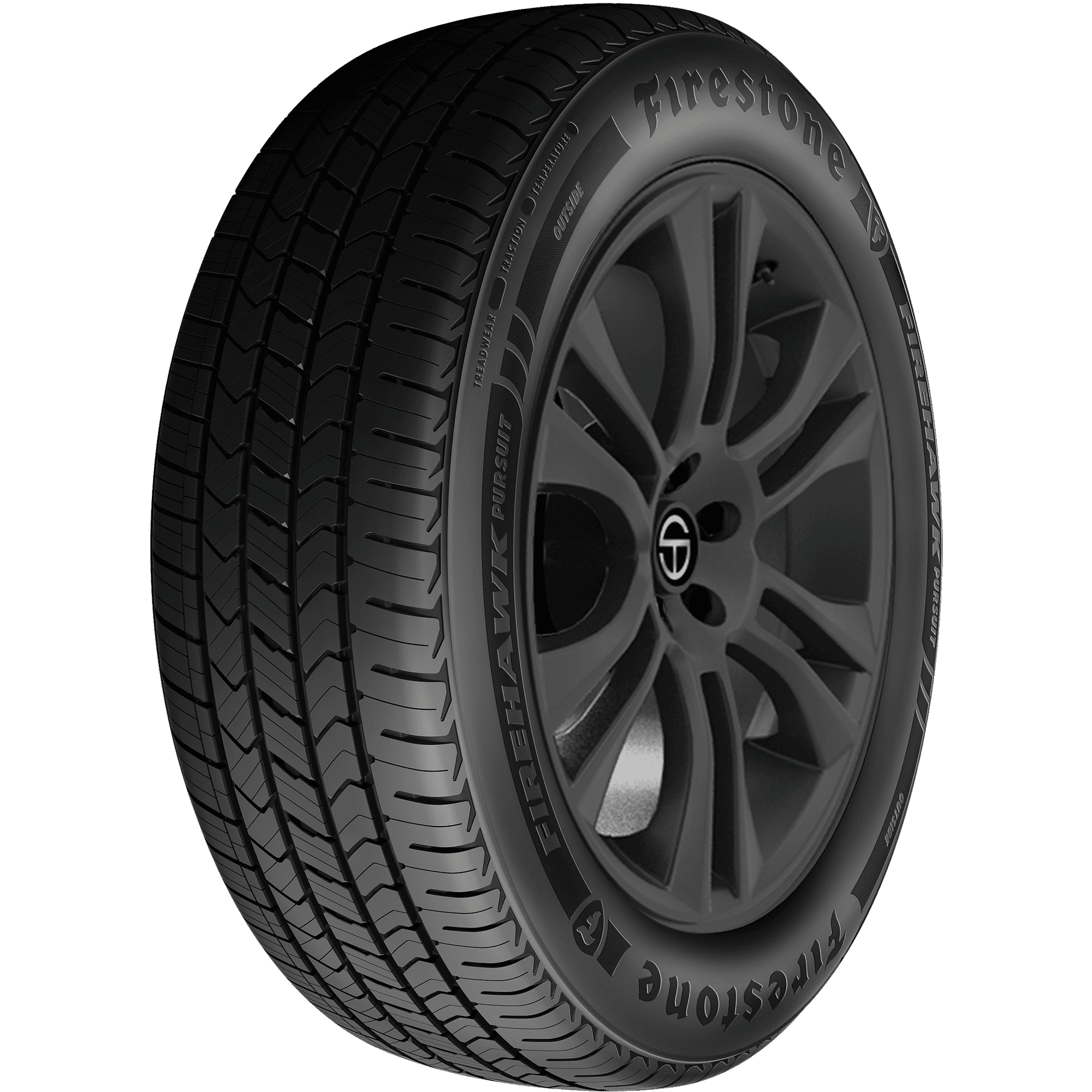 Features include: High-Performance All-Season tire specifically designed to meet the demanding needs of emergency and law enforcement vehicles.; Asymmetric tread pattern and broad outboard shoulder blocks enhance high-speed cornering and durability.; Low-void construction improves traction and lateral grip.; Increased lateral notches and four circumferential grooves channel water from footprint reducing risk of hydroplanning.; Built with two high-strength steel belts, two-ply polyester casing, and two nylon plies to offer durability and ensure controlled handling and stability even at high speeds. – 265/50R20 107V Firestone Firehawk Pursuit Passenger All Season Tires, part number 013789 | Firestone Firehawk Pursuit All Season Tires in Blackwall, 265/50R20 107V | SimpleTire