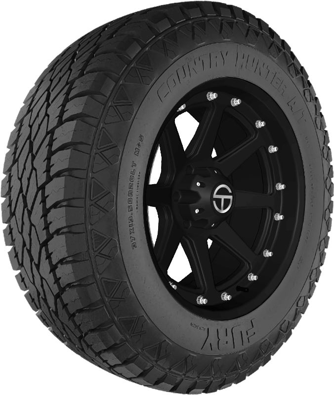 Features include: Designed for use on light trucks and SUVs; Designed for use on Jeeps, light trucks, and SUVs; Innovative wing-shaped tread blocks boost traction on- and off-road; Reinforced sidewall resists damage to protect the tire against cuts, chips, and abrasions; Angled grooves toward shoulder to prevent hydroplaning; Tread pitch is computer tuned for low road noise – LT325x35R26 112S Fury Country Hunter A/T Light Truck All Terrain Tires, part number ATF3253526 | Fury Country Hunter A/T All Terrain Tires in Blackwall, LT325/35R26 112S | SimpleTire