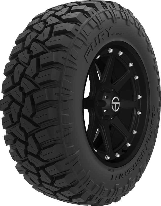 Features include: Designed for use on light trucks and SUVs; Designed for use on Jeeps, light trucks, and SUVs; Lower void ratio at center and open grooves at shoulder for offroad grip; Stone ejectors built into tread grooves promote self-cleaning for consistent traction and to protect the casing from damage; 3-ply polyester casing and high turnup construction increase load carrying capacity while also protecting the tire from damage; The arched segmented stone ejectors extend from shoulder to shoulder of the tread design. They prevent stones and debris from lodging between the tread blocks, while facilitating continuous, maximum traction, and performance.; Optimized design allows for better off-road performance without sacrifing on-road noise and ride comfort – LT395x30R28 128P Fury Country Hunter M/T II Light Truck Mud Terrain Tires, part number FCHIIF3953028 | Fury Country Hunter M/T II Mud Terrain Tires in Blackwall, LT395/30R28 128P | SimpleTire