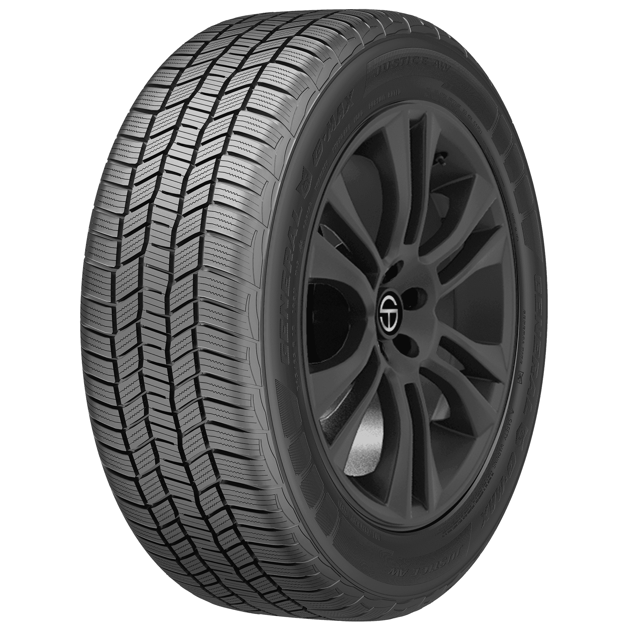 Features include: Tuned for law enforcement and government vehicles; Designed for use on law enforcement and government vehicles; Designed for use on police and emergency vehicles; Engineered for a longer tread life; Three Peak Mountain Snowflake certified for use in moderate to severe winter weather performance; Specialized tread pattern provides year-round traction; Superb wet braking; Dense siping bites into the road to improve grip and braking performance in wet and winter weather; Tread grooves channel water and slush from footprint to resist hydroplanning and enhance wet braking; Stellar winter performance; Wide grooves force water and slush out of the tread to reduce hydroplaning; Durable rubber compound extends tread life; 3-Peak Mountain Snowflake: Meets the severe snow service requirements of the U.S. Tire Manufacturer’s Association (USTMA) and the Tire and Rubber Association of Canada (TRAC); Rubber compound fends off irregular wear for a longer tread life; Three Peak Mountain Snowflake symbol ensures consistent per – 255/60R18 112V General G-MAX Justice AW Passenger All Weather Tires, part number 15578240000 | General G-MAX Justice AW All Weather Tires in Blackwall, 255/60R18 112V | SimpleTire