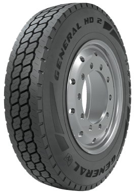 Features include: SmartWay Verified; Designed for use on the drive axle of commercial trucks in long and regional on-highway applications; New, advanced tread compound provides improved mileage and durability; SmartWay verified thanks to a low rolling resistance design that enhances fuel efficiency; Low rolling resistance design maximizes fuel efficiency; Closed shoulder design reduces uneven wear for a longer tread life; Closed shoulder design provides even tread wear and enhanced wet traction; Built with a special rubber compound that promotes even wear and increases durability to help drivers get more miles out of their purchase; Patented innovative groove technology leads to minimum stone retention, extending casing life; Angled grooves force rocks, stones, and other debris out of the tread for consistent traction and to protect the casing from damage – 295/75R22.5 144/140L General HD 2 Commercial Tires, part number 05211790000 | General HD 2 Trailer Tires in Blackwall for Commercial Vehicle, 295/75R22.5 144/140L | SimpleTire