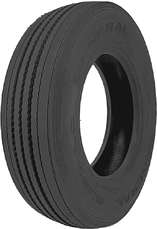 Ideal for use on commercial trucks, the S360 is General Tire’s all-position tire of choice for local delivery and short haul, on- and off-highway service. Its all-purpose tread design and unique multi-service compound resists abrasions and penetrations, and provides excellent traction and fuel economy throughout the life of the tire. The tire features a stone ejection system that reduces stone retention, offering an extended casing life. A general rib design contributes to the S360’s competitive affordability, trusted reliability, robust performance and superior abrasion resistance. – Features include: Cut and chip resistant tread compound guards the tire from damage for a longer tread life; Stone ejector grooves force rocks, stones, and other debris out of the tread for consistent traction and to protect the casing from damage; Tread pattern and rubber compound allow for strong traction and performance year-round; Designed for use on all positions of commercial trucks in local delivery and short haul applications – 11/R24.5 149L General S360 Commercial Tires, part number 5683730000 | General S360 Trailer Tires in Tubeless for Commercial Vehicle, 11/R24.5 149L | SimpleTire