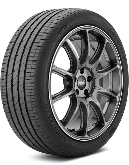 Features include: Summer tread; should not be used when temperatures are consistently below 45 degrees Fahrenheit; Black sidewall; Used as Original Equipment on select sports and performance-oriented cars; Four wide grooves force water out of the tread to reduce the risk of hydroplaning on wet roads; Sound Comfort Technology reduces road noises and vibrations to create a quiet, comfortable ride on drivers and passengers; Computer optimized design eliminates road noises and vibrations to improve ride comfort; Asymmetrical tread pattern enhance traction and handling performance – 275/45R21 110H Goodyear Eagle F1 Asymmetric 5 SCT Passenger UHP Summer Tires, part number 103028629 | Goodyear Eagle F1 Asymmetric 5 SCT UHP Summer Tires in Blackwall, 275/45R21 110H | SimpleTire