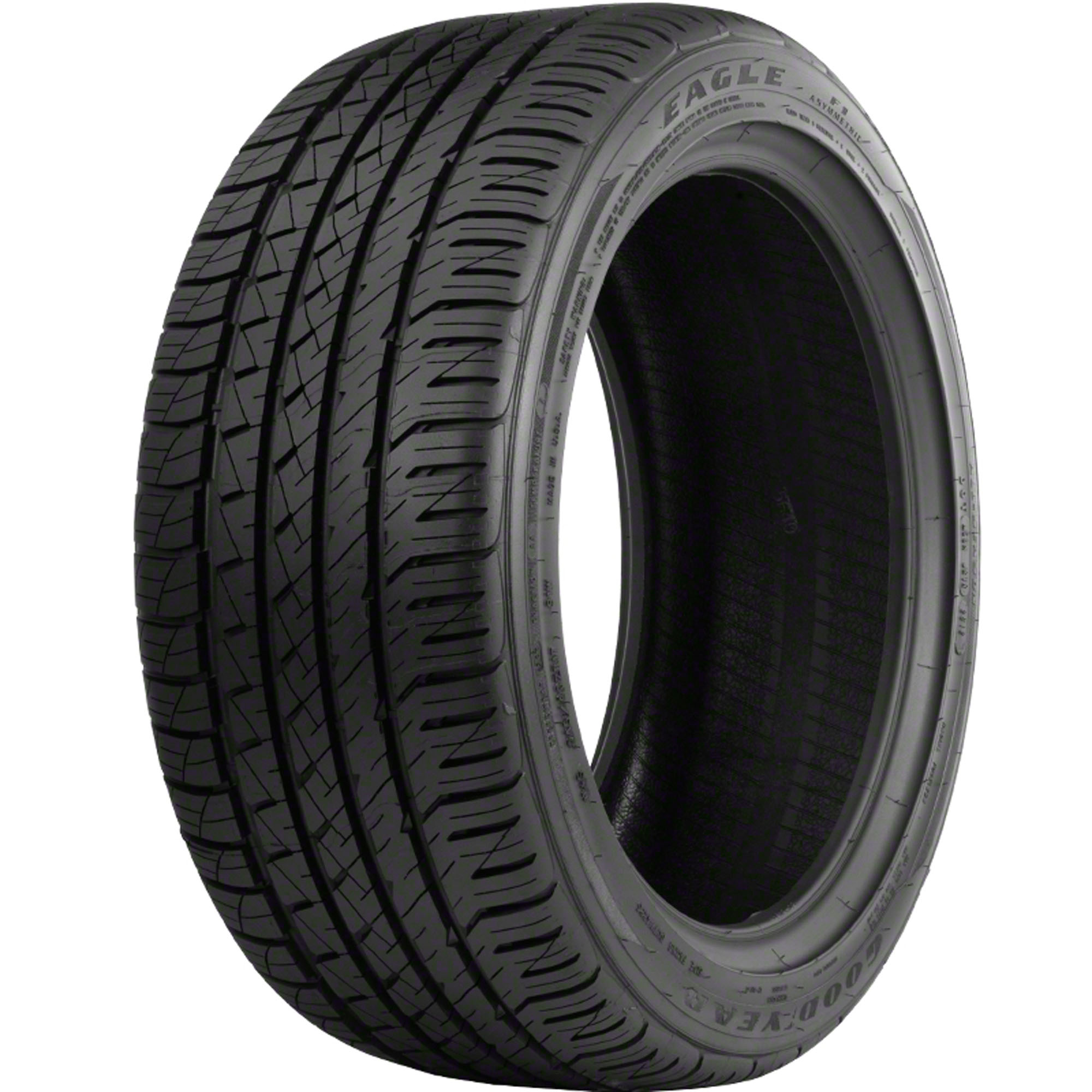 Features include: All-season tread; Black sidewall; Built with Run on Flat technology that assists drivers during a puncture or blowout; Special tread compound boosts wet and dry traction in any season; Run-on-flat reinforced sidewall allows speeds up to 50 mph even after complete tire failure; Race-inspired asymmetric design improves steering response; Dry handling zone enhances the tire’s footprint for confident dry traction and handling; TredLock(r) technology includes a network of sipes for extra biting edges; Dual-zone, asymmetric tread pattern for year-round traction even in snow or slush – 245/40R20 95V Goodyear Eagle F1 Asymmetric A/S ROF Passenger UHP All Season Tires, part number 104423390 | Goodyear Eagle F1 Asymmetric A/S ROF Tires in Blackwall, 245/40R20 95V | SimpleTire