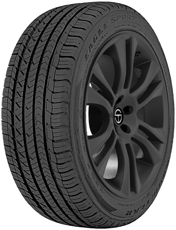 The Eagle Sport All-Season is an all-season tire designed for use on passenger vehicles and offers drivers responsive handling, strong grip, and a 50,000-mile limited tread life warranty. – Features include: Ultra-high-performance all-season tread ; Black sidewall; 50,000 mile limited manufacturer tread life warranty; Features a special rubber compound that provides outstanding wet and dry performance with enhanced grip in light winter weather conditions; Long lasting tread which creates biting edges even as the tire wears; RaceWrap Construction Technology, a feature found in most NASCAR race cars, enhances steering response and handling stability; Uniform ride quality even at high speeds with its internal structure consisting of twin steel belts reinforced by spirally wrapped polyamide – 245/45R18 96W Goodyear Eagle Sport All-Season Passenger All Season Tires, part number 109056366 | Goodyear Eagle Sport All-Season Tires in Blackwall, 245/45R18 96W | SimpleTire