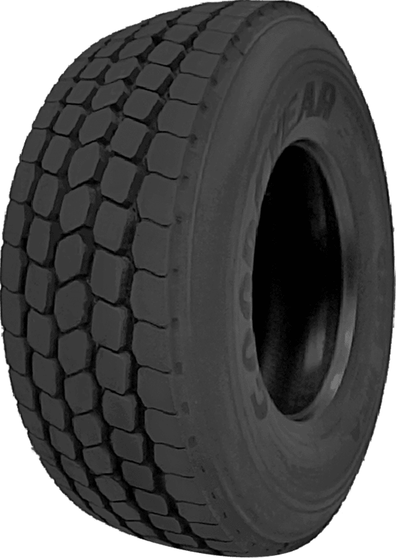 Goodyear G296 MSA tires are meant for heavy on and off road use. They have been designed to provide long mileage as a super single tire with a 23/32 tread that gives you excellent grip and more even tread wear. Heavy industrial use is what the Goodyear G286 MSA does best. The tires contain severe service compound from Goodyear. This helps to make the tires cut, chip, and tear resistance as well as adding extra life to your usable mileage. The tread design is optimized to promote all-season traction whether the roads are wet, snowy, or dry and friendly. Deep, wide circumferential grooves help give you maximum biting edges. The Goodyear G296 MSA tires come with reduced road noise and a natural self-cleaning mechanism from the construction of the circumferential grooves. These are tubeless tires with drop center rims. The rubber is designed to be puncture sealing to prevent blowouts and keep you on the road. – Features include: Super Single wide base tire that takes the place of dual wheels; Reinforced casing protects against damage; Optimized design reduces road noise to boost ride comfort; All-terrain tread design; Rim/Wheel is not included with purchase – 445/65R22.5 168K Goodyear G296 MSA Commercial Tires, part number 756314365 | Goodyear G296 MSA Trailer Tires in Blackwall for Commercial Vehicle, 445/65R22.5 168K | SimpleTire