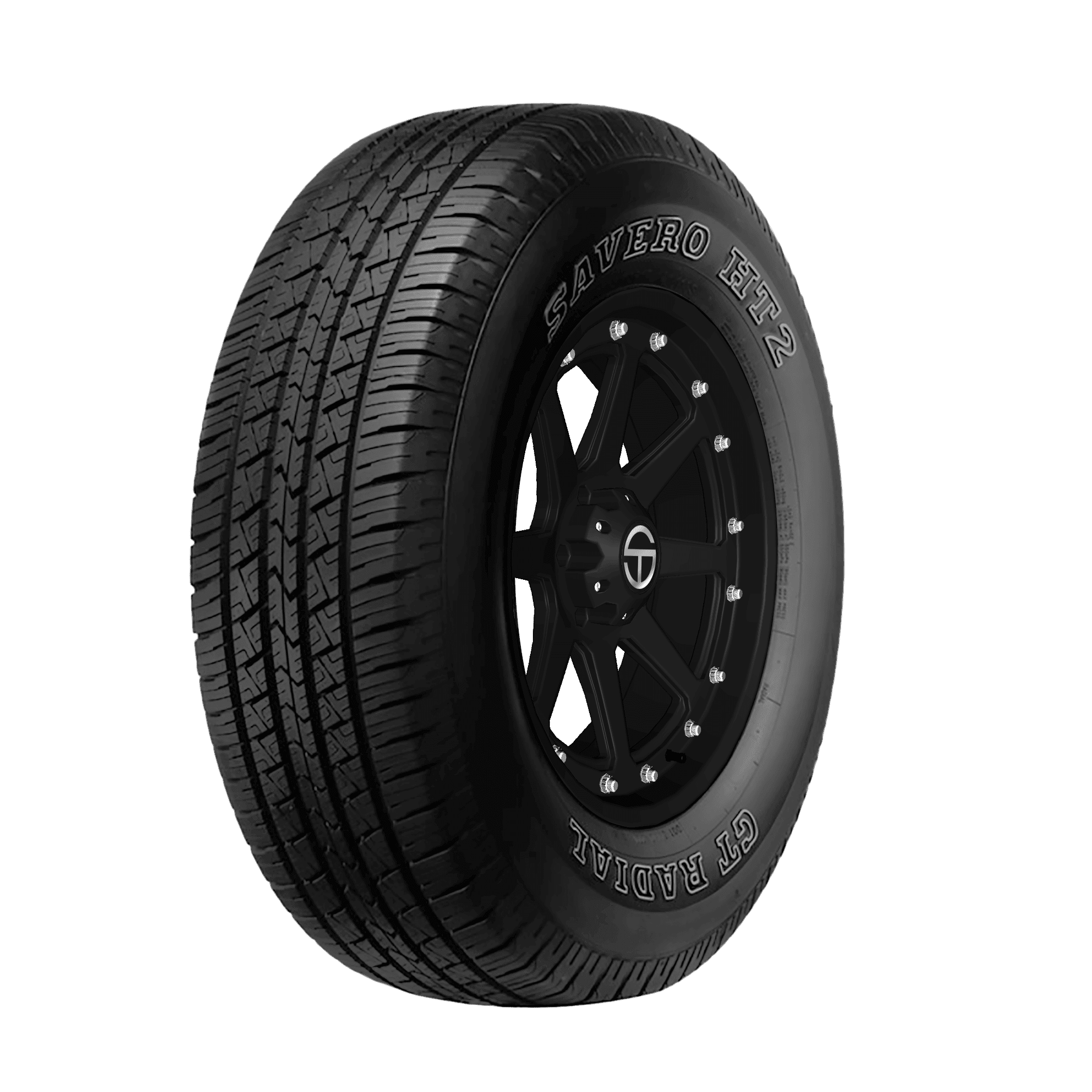 The GT Radial Savero HT2 is a premium all-season tire specially designed for drivers who are looking for reliable handling and control during all weather conditions. Ideal for SUVs and light trucks the GT Radial Savero HT2 . It features an advanced tread compound which provides it with superior grip and stability on both wet and dry road surfaces. The four deep wide evacuation grooves helps water to evacuate efficiently so it maintains strong contact with the road while minimizing hydroplaning risk. the advanced noise-cancelling technology reduces road noise so you and your passengers can enjoy quiet and comfortable rides even when travelling at long distances. The superior five-rib tread design ensures reliable handling and ride comfort. It is covered by a 50,000-mile limited warranty for P-Metric only. To get the most out of the GT Radial Savero HT2, it is recommended to use it in sets of four. – Features include: Built with an all-season rubber compound that increases grip and stability in dry, wet, and light winter weather conditions; All season tread; Features a noise cancelling tread block design that reduces road noises and vibrations to create a smooth, quiet, and comfortable ride for drivers and passengers; Outlined White Letter or Black sidewall depending on the tire’s size; Engineered with GT Radial’s Carcass Tension Technology that improves strength and durability while also boosting handling capabilities on wet and dry roads; 50,000 miles limited manufacturer tread life warranty, and 25,000 mile limited manufacturer tread life warranty for rear of split fitments; Backed by GT Radial’s Road Hazard, Limited Warranty, 30 Day Test Drive Trial, 24 Hour Roadside Assistance, and Mileage Warranty (restrictions and limitations apply); Backed by a 50,000 mile limited manufacturer tread life warranty in regular fitments and a 25,000 mile limited warranty in the rear of split fitments; An advanced all-season rubber comp – 235x60R18 107V GT Radial Savero HT2 Light Truck Highway Tires, part number B540 | GT Radial Savero HT2 Highway Tires in Blackwall, 235/60R18 107V | SimpleTire