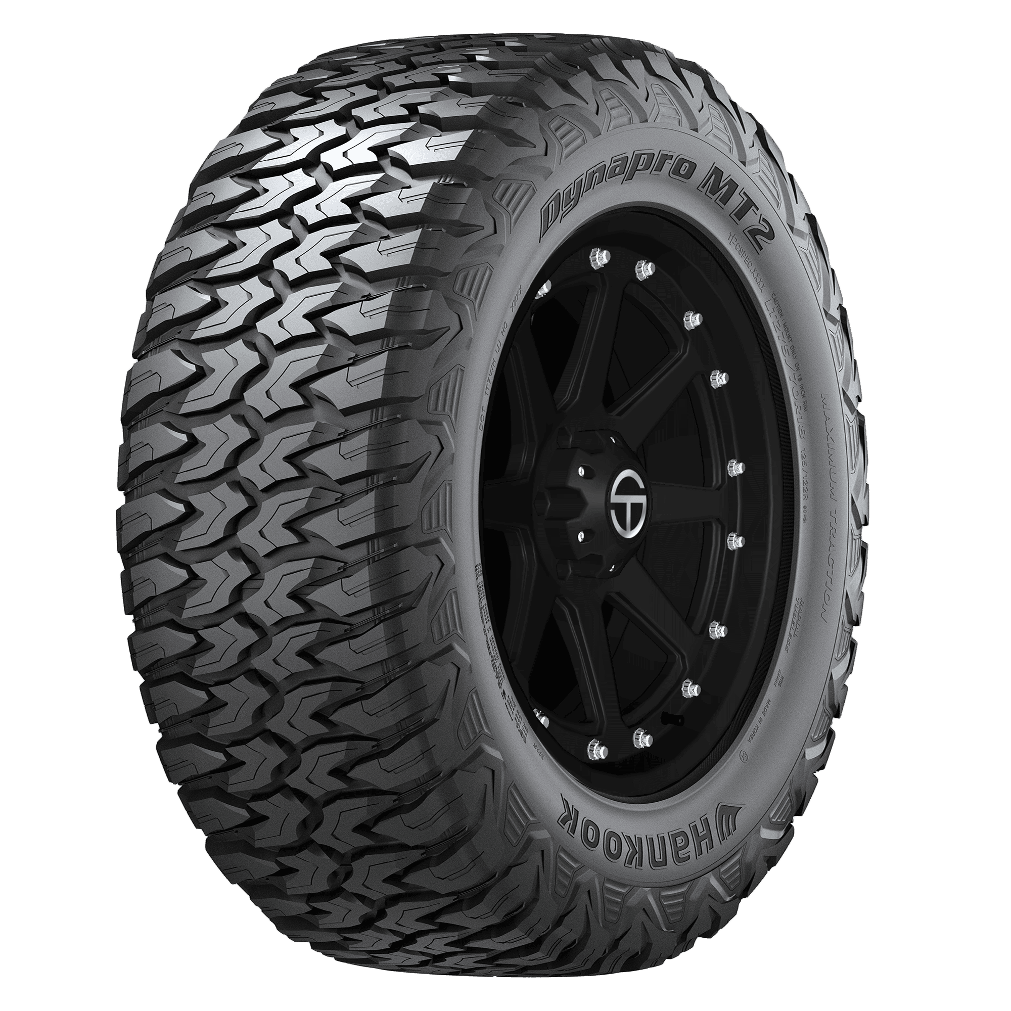An off-road tire, Hankook’s Dynapro MT (RT05) offers drivers all-season performance on the toughest terrains. – Features include: Mud terrain tread; Black sidewall; Mud and stone ejectors enhance traction, and protect the tread; Mud and stone ejectors within the tread protect against stone drilling and punctures; 3-ply sidewall is developed to endure the most punishing off-road conditions; Tread block sipes improve traction in wet, snowy, and off-road conditions; Optimized tread design reduces road noises and delivers ultimate off-road traction; Scooped shoulder blocks provide extra traction in muddy and rocky terrain; Bold tread features on the sidewall provide additional off-road traction, plus abrasion and puncture resistance – LT35x12.50R20 125Q Hankook Dynapro MT2 RT05 Light Truck Mud Terrain Tires, part number 2021411 | Hankook Dynapro MT2 RT05 Mud Terrain Tires in Blackwall, LT35/12.50R20 125Q | SimpleTire