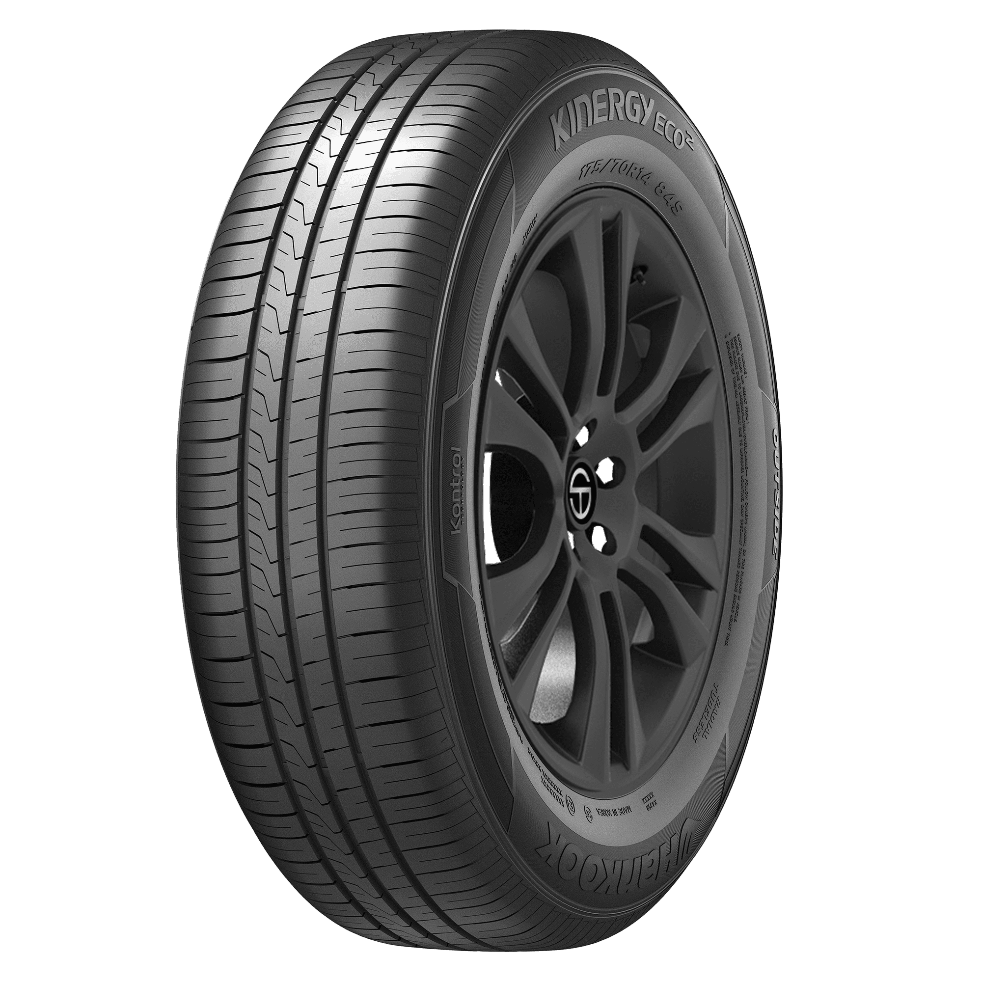 A summer performance tire, the Kinergy Eco2 (K435) from Hankook is designed for use on passenger cars such as coupes, sedans, and CUVs and offers drivers strong traction in wet and dry conditions, improved ride comfort, a long tread life, and a reduced environmental impact. The Kinergy eco2 is a summer tire that has been developed for modern small, compact and mid-range vehicles. Like its predecessor, which returned very good test results, a focus has been placed on optimizing rolling resistance along with a further increase in mileage and noise reduction without compromising a solid performance in wet and dry conditions. – Features include: Wide lateral grooves incorporated in to the inside blocks deliver hydroplaning resistance for excellent wet handling and braking; Tread is designed for use in warmer weather; Stiff center tread block holds the tread pattern in place as its shape evolves; Black sidewall; New compounds improve wet and wear return without sacrificing other performance. Specifically, wear performance is improved by the optimized crosslinking density. Advanced mixing technology with high loading filler and high molecular weight functionalized polymer improves wet and wear performance.; Built with wide lateral grooves in its shoulders that remove water from the tire for better handling and braking performance on wet roads; Optimal widths and positioning of the three channel grooves ensures excellent performance in wet driving conditions. Wide outer grooves provide maximum water evacuation which promotes wet traction keeping the tire cooler in the dry.; Aqua turbine technology gives improves drainage for longitudinal and lateral tra – 215/60R16 95H Hankook Kinergy Eco2 (K435) Passenger UHP Summer Tires, part number 1024719 | Hankook Kinergy Eco2 (K435) UHP Summer Tires in Blackwall, 215/60R16 95H | SimpleTire
