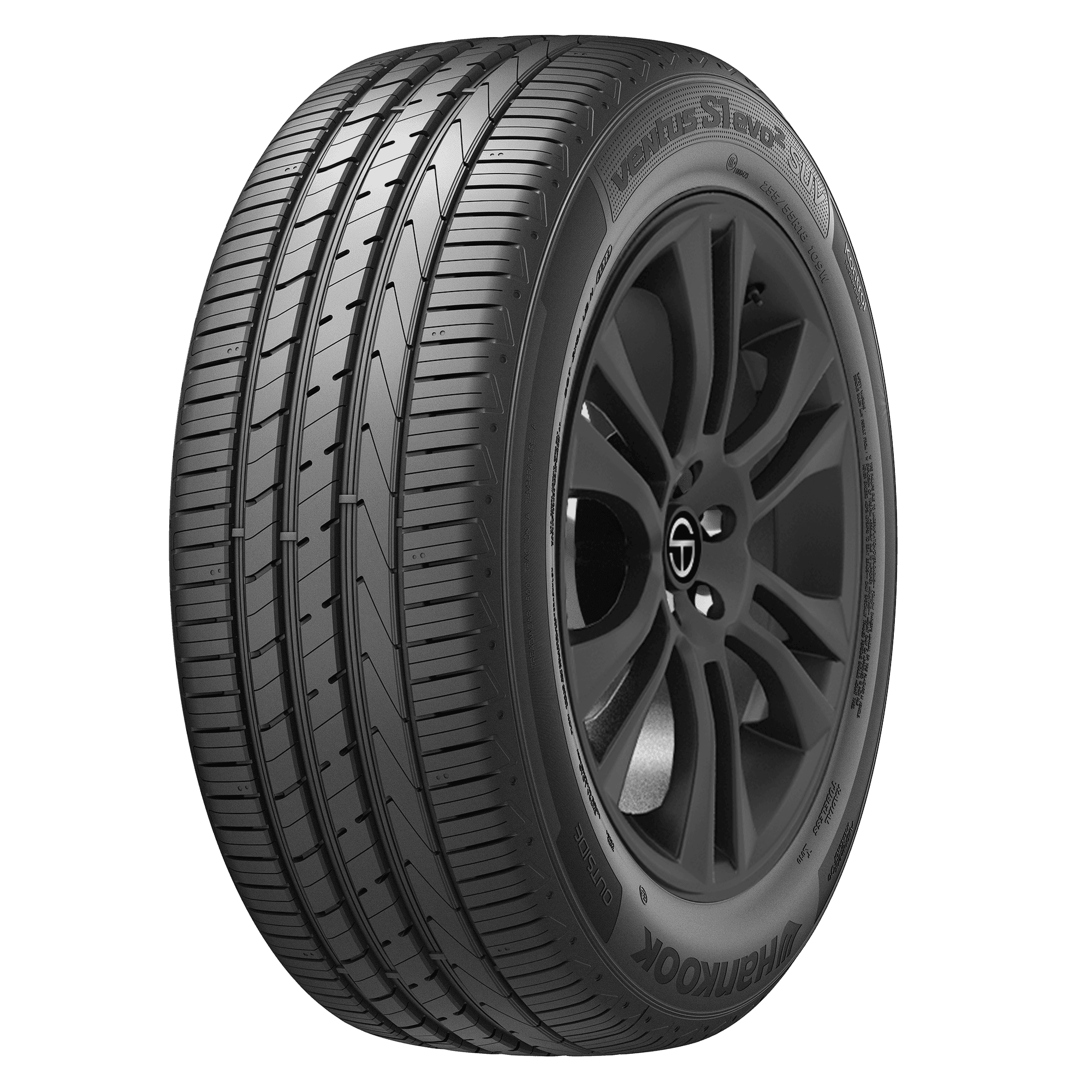 Hankook’s Ventus S1 evo2 SUV (K117A) is a performance tire that’s designed for use on CUVs and SUVs and offers drivers shorter braking distances in wet and dry conditions. – Features include: Designed for use on CUVs and SUVs; Tread is designed for use in warmer weather; Racing tech-optimized tread radius for strong handling and high-speed performance; Black sidewall; Optimized tread block stiffness for excellent stability; Alignment indicator within the tread allows drivers to visually see if they need to schedule an alignment; Strong center rib for superior handling and steering response; Circumferential and lateral grooves combo for quick water removal and better hydroplaning resistance – 235/60R18 103W Hankook Ventus S1 evo2 SUV (K117A) Passenger Performance Tires, part number 1015505 | Hankook Ventus S1 evo2 SUV (K117A) Performance Tires in Blackwall, 235/60R18 103W | SimpleTire
