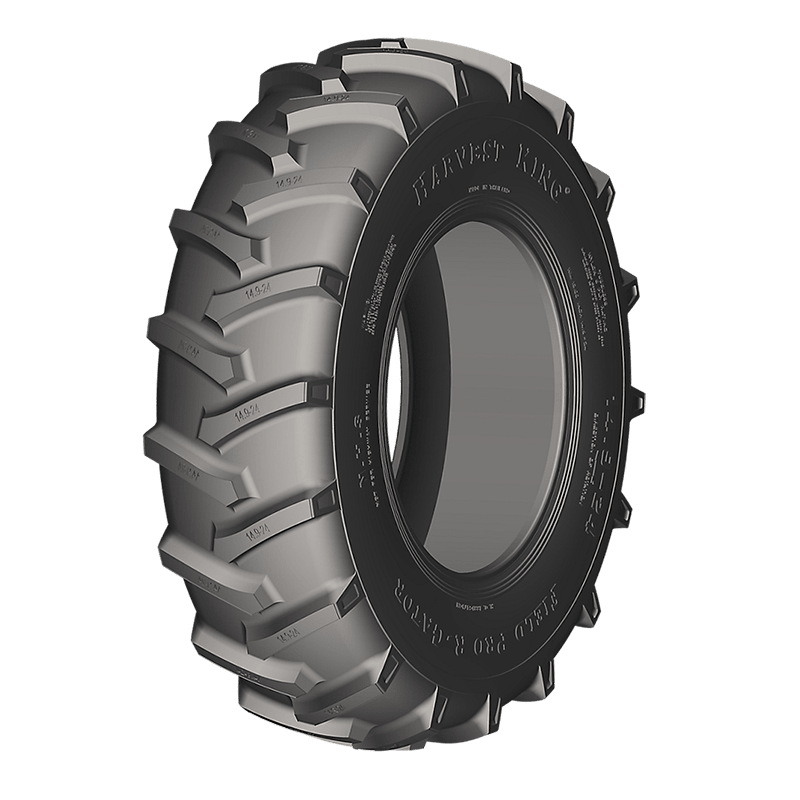 Features include: Designed for use on the rear of tractors or mobile irrigation equipment in agricultural applications; Open tread center for improved cleaning; Built with an R-1 tread pattern that forces mud, dirt, soil, water, and other unwanted materials out of the tire for consistent traction; Rounded cavity shape reduces crop and soil disturbance; Features a rounded cavity shape that minimizes crop and soil compaction; Anti-ozone compound extends the life of the tire; Engineered with an anti-ozone compound that increases strength and durability for a longer tread life – 11.2-24 Harvest King Field Pro Irrgation R-1 Farm Tires, part number GHD1124 | Harvest King Field Pro Irrgation R-1 Farm Tires in Tubeless, 11.2-24 | SimpleTire