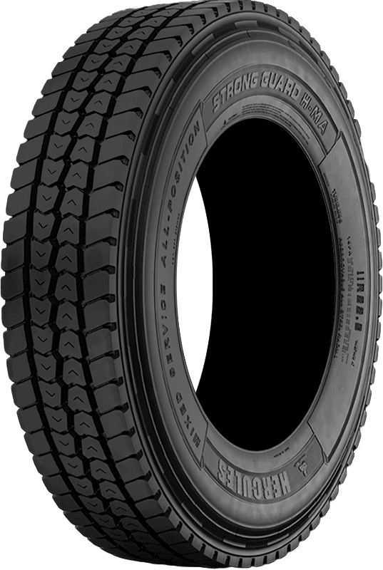 Features include: Designed for use on all positions of semi-trucks in mixed service applications; Innovative tread construction withstands the rough terrain of mixed-service applications; Large sipe tread blocks create an aggressive ribbed design, promoting traction and handling; Biting shoulders dig into tough terrains for increased traction in any conditions; Curb protector and stone defense prevents damage – 315/80R22.5 161/157J Hercules Strong Guard H-MA Commercial Tires, part number 98500 | Hercules Strong Guard H-MA Trailer Tires in Blackwall for Commercial Vehicle, 315/80R22.5 161/157J | SimpleTire