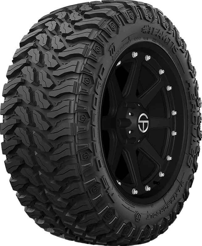 Features include: Designed for use on light trucks and SUVs; Designed for use on Jeeps, light trucks, and SUVs; Strategic tread pattern that provides excellent grip in high and low speed situations on multiple terrains; Dual sidewall design allows drivers to customize the look of their ride; Aggressive tread pattern design for better grip in extreme conditions; Robust tread compound and three-ply sidewall promote increased load-carrying capacity – LT37x13.50R20 128Q Hercules TIS Offroad TT1 Light Truck Mud Terrain Tires, part number 98532 | Hercules TIS Offroad TT1 Mud Terrain Tires in Blackwall, LT37/13.50R20 128Q | SimpleTire