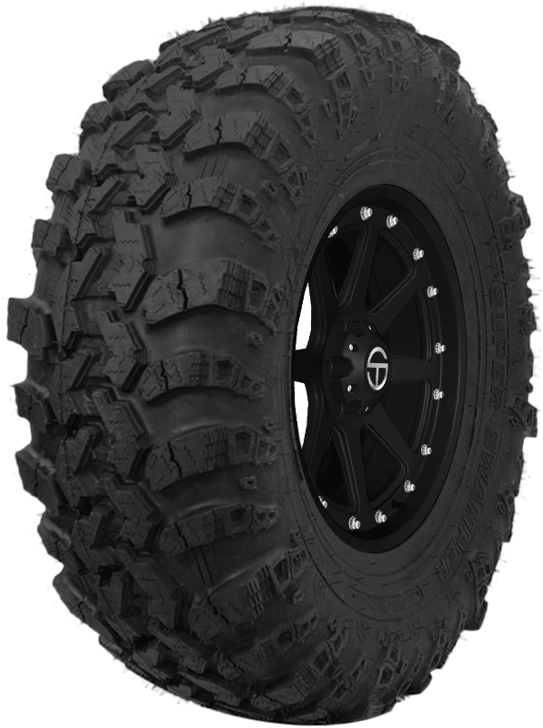 These IROK Bias Ply tires from Interco feature a design that comes from years of experience, producing a tire with traction as good as it gets in mud, snow, and rock climbing. They have directional tread in the famous 3-stage lug design, scooped lugs, blade and molded siping, special sidewall features, an extra-tough cord, and cut-resistant compounds in a super traction package. – Features include: Built from years of experience, offering unrivaled traction in mud, snow, and rocky terrains.; Features the renowned 3-stage lug design and scooped lugs for exceptional grip and control.; Blade and molded siping enhances traction, particularly in challenging off-road conditions.; Special sidewall features and an extra-tough cord contribute to the tire’s durability and stability.; Incorporates cut-resistant compounds for added resilience, making it a comprehensive traction package for off-road enthusiasts.; Cut-resistant provides added durability; Tread is designed for use in mud and other off-road terrains – LT36x13.50R16.5 Interco IROK Radial Light Truck Mud Terrain Tires, part number ROK03R | Interco IROK Radial Mud Terrain Tires in Blackwall, LT36/13.50R16.5 | SimpleTire