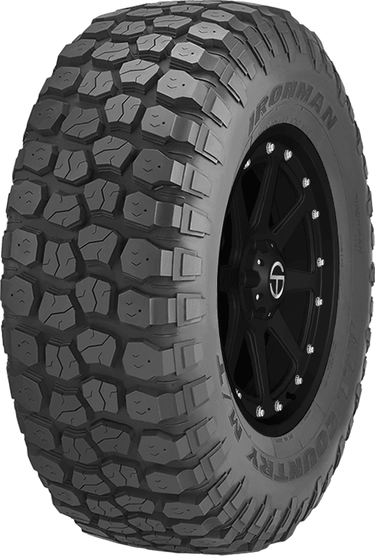 The All Country M/T from Ironman is an all-terrain tire that offers enhanced durability and extra “bite” in severe weather applications. – Features include: Versatile all-terrain tire, ideal for Jeeps, light trucks, and SUVs, providing a balance of off-road capability and on-road comfort.; Strategically designed grooves boost traction and puncture resistance; Designed for use on Jeeps, light trucks, and SUVs; Designed for enhanced durability, it can handle both long distances and tough terrains with ease.; Built with large shoulder blocks that enhance traction on- and off-road; Built with large shoulder blocks that improve traction on off-road terrains by forcing mud, dirt, rocks, and other debris out of the tread; Features large shoulder blocks for better traction and grip in severe weather and challenging trails.; Staggered buttress design increases off-road capability and guards against high sidewall cut and abrasions; 3-ply sidewall protects the tire against cutting and tearing; Three-ply sidewall design provides increased protection against cuts and tears, ensuring a longer tire lifespan.; Widely spaced grooves and open shoulders force mud, dirt, rocks, ston – LT285x75R16 126/123Q Ironman All Country M/T Light Truck Mud Terrain Tires, part number 92615 | Ironman All Country M/T Mud Terrain Tires in Outlined White Lettering, LT285/75R16 126/123Q | SimpleTire
