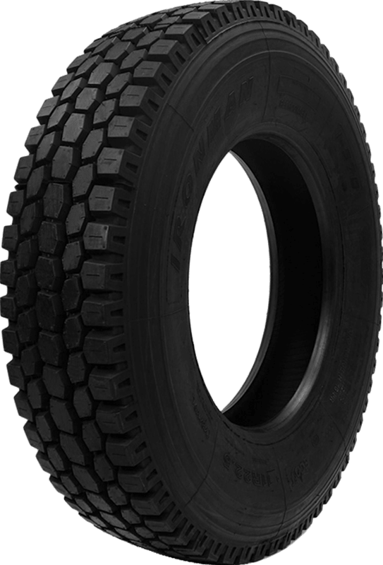 Open Shoulder Drive – Features include: Designed for use in the drive position in commercial applications; Built with a deep tread design that promotes a longer tread life; Aggressive tread pattern is engineered to reduce irregular wear for a longer service life; Features an open shoulder design and siped tread blocks that enhance traction in dry, wet, and winter weather conditions; Heavy-duty, all-steel casing improves durability and retreadability for a longer service life; Heavy-duty all-steel casing for excellent retreadability and long life.; Open shoulder design and tough, siped blocks provide excellent traction under all weather conditions.; Aggressive tread design withstands irregular wear.; Deep tread for excellent mileage. – 285/75R24.5 144/141L Ironman I-370 ECOFT Commercial Tires, part number 86224 | Ironman I-370 ECOFT Trailer Tires in Blackwall for Commercial Vehicle, 285/75R24.5 144/141L | SimpleTire