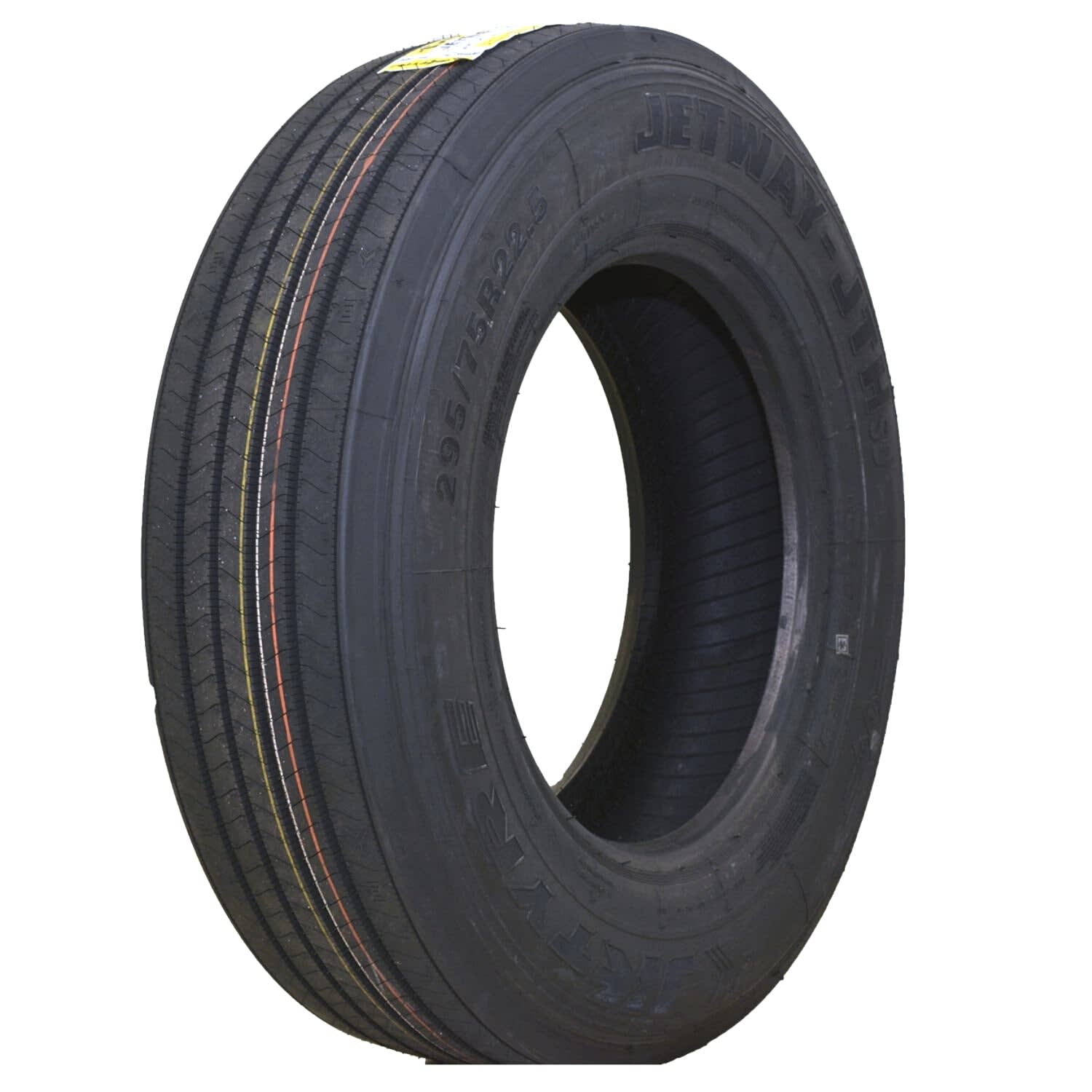 Features include: Designed for use on the trailer axle of semi-trucks; Ribbed tread pattern and stronger rubber compound improve steering responsiveness and year-round traction; Outer ribs grip the road and increase cornering and maneuvering ability; Reinforced internal structure increases load carrying capacity and durability; Four circumferential grooves effectively resist hydroplaning by draining water out of the tread – 285/75R24.5 144/141L JK Tyre Jetway JTHSD Commercial Tires, part number 005071IN | JK Tyre Jetway JTHSD Trailer Tires in Raised White Lettering for Commercial Vehicle, 285/75R24.5 144/141L | SimpleTire