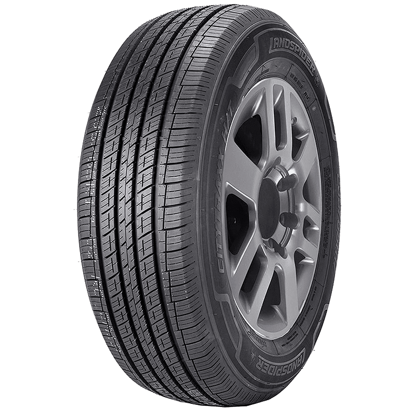 Designed for use on light trucks and SUVs that carry heavier loads, the CityTraxx H/T from Landspider is an all-season highway terrain tire. Built with extra siping that improves braking and wet grip capabilities, the CityTraxx H/T’s optimized design reduces road noises to create a quiet, comfortable ride. – Features include: Highway tread; Black sidewall; Designed for use on light trucks and SUVs; Claw-shaped design within the tread improves grip on mud and loose soil; Optimized design reduces road noises to create a quiet, comfortable ride – 215/65R17 99H Landspider CityTraxx H/T Passenger All Season Tires, part number CHT009 | Landspider CityTraxx H/T All Season Tires in Blackwall, 215/65R17 99H | SimpleTire