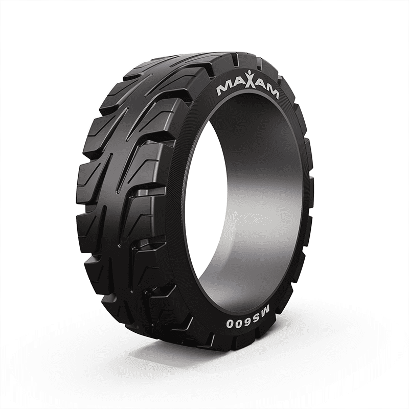 Features include: Designed for use on forklifts; Full tread profile for maximum load distribution; EcoPoint3 rubber compound technology enhances wear resistance and decreases rolling resistance; Five-degree sidewall taper for increased grip; Durable construction for superior cut resistance – 22x12R-16 Maxam MS600 Industrial Tires, part number 57650 | Maxam MS600 Industrial Tires, 22/12R-16 | SimpleTire