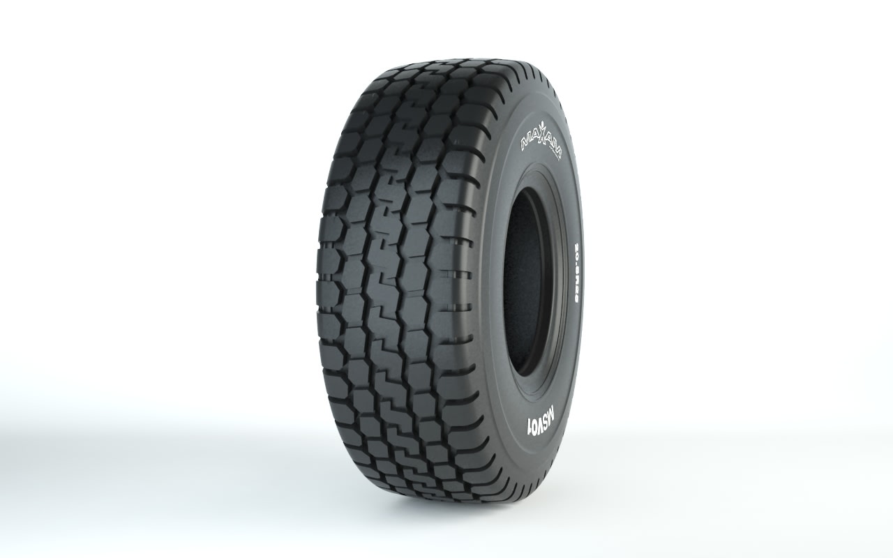 Features include: F speed rating (50 mph); Low road noise and reduced vibration for operator comfort; Excellent stability and handling response at highway speeds; Deep tread grooves and lugs for enhanced performance on- or off-pavement – 525/80R25 177F Maxam MSV01 OTR Tires, part number V030102 | Maxam MSV01 OTR Tires in Tubeless, 525/80R25 177F | SimpleTire