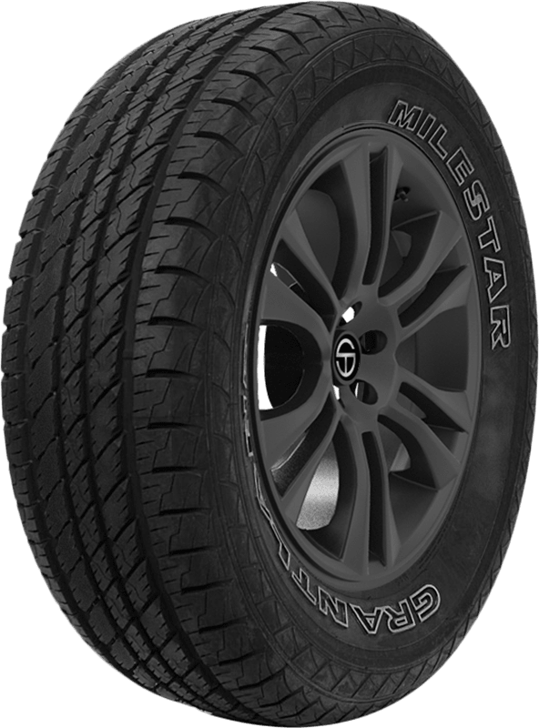 The all season, all-purpose Milestar Grantland will get you through your day. Whether it’s trades or running errands to the local hardware store, carting home oversized packages from the big club store, or taking the family vacation, Grantland will deliver you excellence. – Features include: Designed for use on passenger vehicles; Circumferential tread blocks promote smooth highway traction and lower rolling resistance for improved treadwear and mileage; Optimized angled grooves and siping pattern promotes water evacuation to enhance wet traction and handling; Dual circumferential grooves aid water evacuation for improved lateral stability on wet roads; Durable ribbed shoulder design provides greater traction and improves grip and wearability – LT265x75R16 123/120S Milestar Grantland Light Truck All Season Tires, part number 22279033 | Milestar Grantland All Season Tires in Outlined White Lettering, LT265/75R16 123/120S | SimpleTire