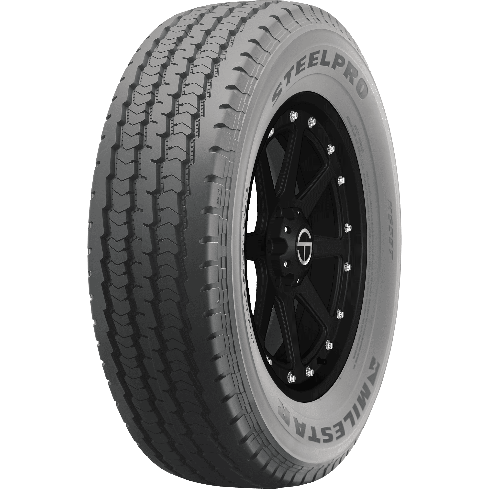 Features include: Backed by a 40,000 mile limited manufacturer tread life warranty; 3-ply sidewall provides added strength and impact protection; Tread is designed for strong year-round performance; Stone ejectors are integrated to protect against stone retention and drilling for a longer tread life; 40,000 mile limited manufacturer tread life warranty; Durable ribbed shoulder design provides greater stability and reduces irregular wear; Features a 3-ply sidewall for added durability; Deep, zigzag grooves promote rapid water evacuation and improves traction and stability, even under heavy loads; Zigzag grooves rapidly evacuate water to reduce the risk of hydroplaning, and improve traction and stability under heavy loads – LT265x75R16 123/120Q Milestar Steelpro MS597 Light Truck All Season Tires, part number 22279053 | Milestar Steelpro MS597 All Season Tires in Blackwall, LT265/75R16 123/120Q | SimpleTire