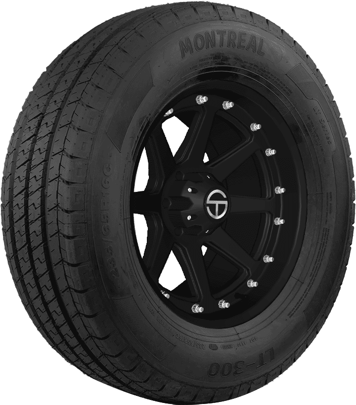 Features include: Designed for use on cargo vans; Reinforced construction increases strength and durability for a higher load carrying capacity; Two wide grooves work with a narrow groove to drain water out of the tread for solid traction and handling wet roads; Large shoulder blocks put more rubber on the road to boost cornering and handling capabilities; Angled tread blocks enhance grip and traction year-round – LT235x65R16C 121/119R Montreal LT-300 Light Truck Highway Tires, part number MN119 | Montreal LT-300 Highway Tires in Blackwall, LT235/65R16C 121/119R | SimpleTire