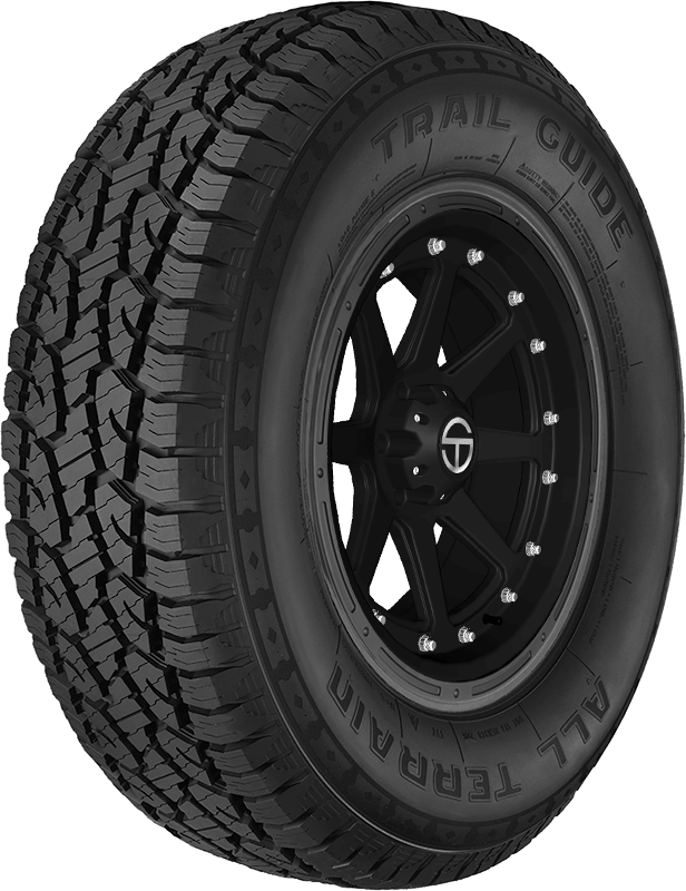 An all-terrain tire, the Trail Guide All Terrain is designed for use on Jeeps, SUVs, Mid- and Full-sized pickups, and vans, and offers drivers superior on- and off-road traction plus a 50,000-mile limited tread life warranty. – Features include: All-season tread; Outlined White Letter or Black sidewall depending on the tire’s size; 50,000-mile limited manufacturer tread life warranty; Three Peak Mountain Snowflake certified thanks to its ability to perform in severe snow conditions; Drivers who like to spend their free time on trails also need a tire’s that able to get them there. Offering strong on- and off-road traction, the Trail Guide All Terrain from Multi-Mile features aggressive open shoulders that remove water, slush, and mud from the tread to improve traction. Jagged edge blocks improve grip on ice and mud, and the Trail Guide All Terrain also features zigzag grooves that provide outstanding grip and superior handling. Creating a surprisingly comfortable ride, the Trail Guide All Terrain is Three Peak Mountain Snowflake certified thanks to its ability to perform in severe snow conditions.; Zigzag grooves and continuous center block allow for superior handling; Jagged edge tread blocks improve grip on ice and mud; Extra-deep tread sipes improv – P235x75R15 109S Multi-Mile Trail Guide All Terrain Light Truck All Terrain Tires, part number TGT64 | Multi-Mile Trail Guide All Terrain Tires in Outlined White Lettering, P235/75R15 109S | SimpleTire