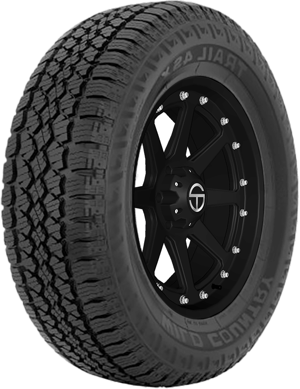 Designed for use on Jeeps, CUVs, SUVs, Mid- and Full-sized pickups, and vans, the Wild Country Trail 4SX from Multi-Mile is an all-terrain tire that offers drivers superior on- and off-road traction along with a 55,000-mile limited tread life warranty. – Features include: All-terrain tread; Outlined White Letter or Black sidewall depending on the tire’s size; 55,000-mile limited manufacturer tread life warranty; Three Peak Mountain Snowflake certified thanks to its ability to perform in severe snow conditions; Whether hitting the trails or simply driving to and from work, today’s Jeep, CUV, SUV, pickup, and van drivers often want a tire that’s able to conquer any terrain. Fortunately, Multi-Mile designed the Wild Country Trail 4SX with these drivers in mind, as it offers superior on- and off-road traction. An aggressive open shoulder design removes water, slush, and mud from the tread so that drivers receive consistent traction, and the Wild Trail 4SX’s jagged edge blocks improve grip on ice and mud. Featuring a Three Peak Mountain Snowflake symbol thanks to its ability to perform in severe snow conditions, the Wild Country Trail 4SX offers a quiet, comfortable ride thanks to its extra-deep tread sipes.; Zigzag grooves and continuous center block allow for superior handling; J – 245x75R16 111S Multi-Mile Wild Country Trail 4SX Light Truck All Terrain Tires, part number 4SX79 | Multi-Mile Wild Country Trail 4SX All Terrain Tires in Outlined White Lettering, 245/75R16 111S | SimpleTire