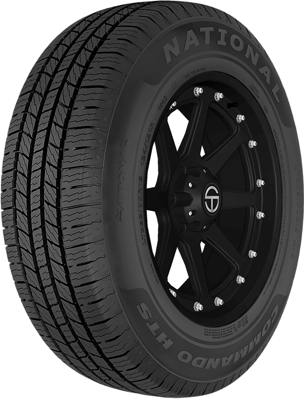 Features include: Backed by a 65,000 mile limited manufacturer warranty; Closed shoulder design improves ride comfort for drivers and passengers by minimizing road noises; Built with an optimized 5-rib tread design that promotes even wear for a longer tread life; Precise tread grooves boost all-season traction and handling performance; Full-depth siping strengthens traction and enhances worn appearance; Built for use on CUVs, SUVs, pickup trucks and vans, including later model fitments; Full-depth siping for extended traction performance and enhanced worn appearance; Precision-aligned tread grooves minimize irregular wear and promote superior all-season handling and traction; Optimized 5-rib tread design for long, even wear and extended mileage capability; Closed shoulder design minimizes noise, allowing for a quieter, more comfortable ride – 265x65R18 114T National Commando HTS Light Truck All Season Tires, part number NHT56 | National Commando HTS All Season Tires in Blackwall, 265/65R18 114T | SimpleTire