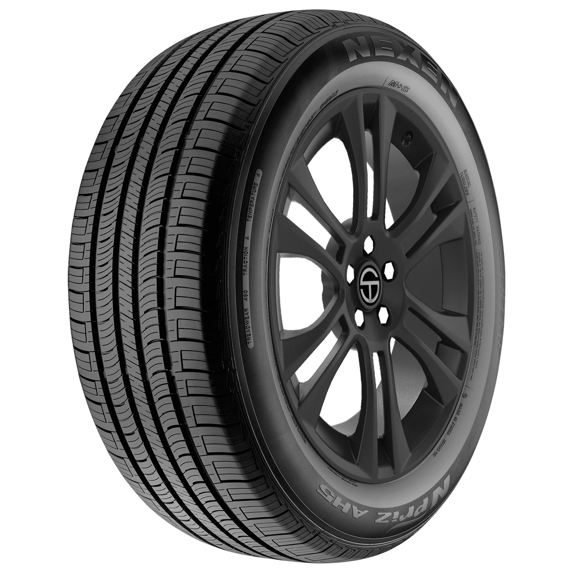 An all-season tire, the N’Priz AH5 from Nexen is designed for use on coupes and sedans and offers drivers better cornering and handling along with a 50,000 mile limited tread life warranty. For a good all-season touring tire, look no further than the Nexen N’Priz AH5. This tire is built with four wide longitudinal grooves. These grooves are computer designed and improve drainage from the tire to give you a strong grip on the road and great traction on the corners. The rigid shoulder block design provides better cornering and handling as well as a quiet and comfortable ride. There is a dual kerf design which enhances block stiffness, giving you a solid and reliable tire which will last a lot of miles. The tires are built for use on a variety of coupes, sedans, minivans, and crossovers, all of which will enjoy fuel efficiency and a quiet comfortable ride. The continuous center rib helps keep your tire moving straight ahead and also provides longer tread life. – Features include: Covered by Nexen’s best-in-class Total Coverage Warranty which includes a 50,000 mile tread wear warranty, 36-months of Roadside Assistance, and Road Hazard for the first 3/32″ or 2 years; All-season tread; Four wide longitudinal grooves shed water quickly and efficiently to prevent hydroplaning in wet conditions; White or Black sidewall depending on the tire’s size; Rigid shoulder blocks enhance cornering and deliver a smooth and quiet ride; 60,000 mile limited manufacturer tread life warranty; Dual kerf design enhances block stiffness for long-lasting wear; Backed by Nexen’s Total Coverage Warranty, which includes a road hazard warranty (2 years/ first 3/32″ tread wear) and roadside assistance (36 months) [certain terms and conditions apply]; Tread design offers enhanced ride comfort, confident handling, and better braking performance; Dual kerf design to improve wearability for a longer service life; An optimized design reduces road noises and vibrations for a quiet, comfortable ride; Engineered with a dua – 205/65R16 95T Nexen N’Priz AH5 Passenger All Season Tires, part number 15131NXK | Nexen N’Priz AH5 All Season Tires in Blackwall, 205/65R16 95T | SimpleTire